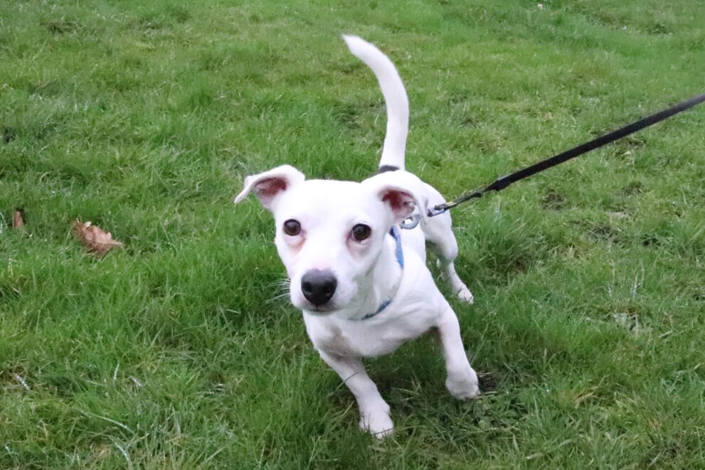 He is very vocal when left in our kennels so we think he would appreciate a new owner who can be with him for most of the day initially. They could work with Timmy to help him gain confidence to be left alone for short periods.